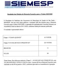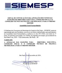 EDITAL DE CONVOCAÇÃO PARA APURAÇÃO DOS VOTOS DAS ELEIÇÕES DE DIRETORIA EXECUTIVA, CONSELHO FISCAL E O CONSELHO TECNICO DE POLITICA METROLOGICA PARA O TRIENIO 2025/2028