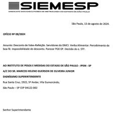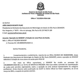 RESPOSTA DA DIREÇÃO SUPERIOR DO IPEM/SP AO ENTE SINDICAL, POR CONTA DO OFÍCIO SIEMESP DE OPOSIÇÃO/REPÚDIO AO NOVO PROJETO DE PLANO DE SAUDE COM COPARTICIPAÇÃO DE SERVIDORES
