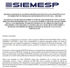 RESPOSTA DO IPEM-SP AO OFÍCIO SIEMESP QUE DENUNCIA INCONSISTÊNCIAS E INCORREÇÕES NO PROGRAMA DE DEMISSÃO INCENTIVADA – PDI 2026