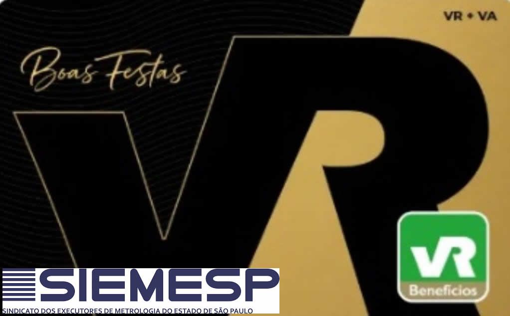 A direção do SIEMESP, com satisfação e gratidão pela confiança depositada neste ano que se encerra, comunica aos seus associados(as) que em dezembro de 2025 será entregue um cartão da "VR - BOAS FESTAS", no valor de R$ 300,00, para o fim de colaborar com as festas natalinas dos integrantes da nossa categoria.
